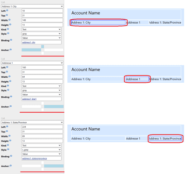 - The following is one of possible anchor configurations for 3 cells in 1 row. Clearly, it only makes sense to have one cell in each logical row which has both left and right anchor activated. If there are two cells with both anchors activated, overlapping will occur.