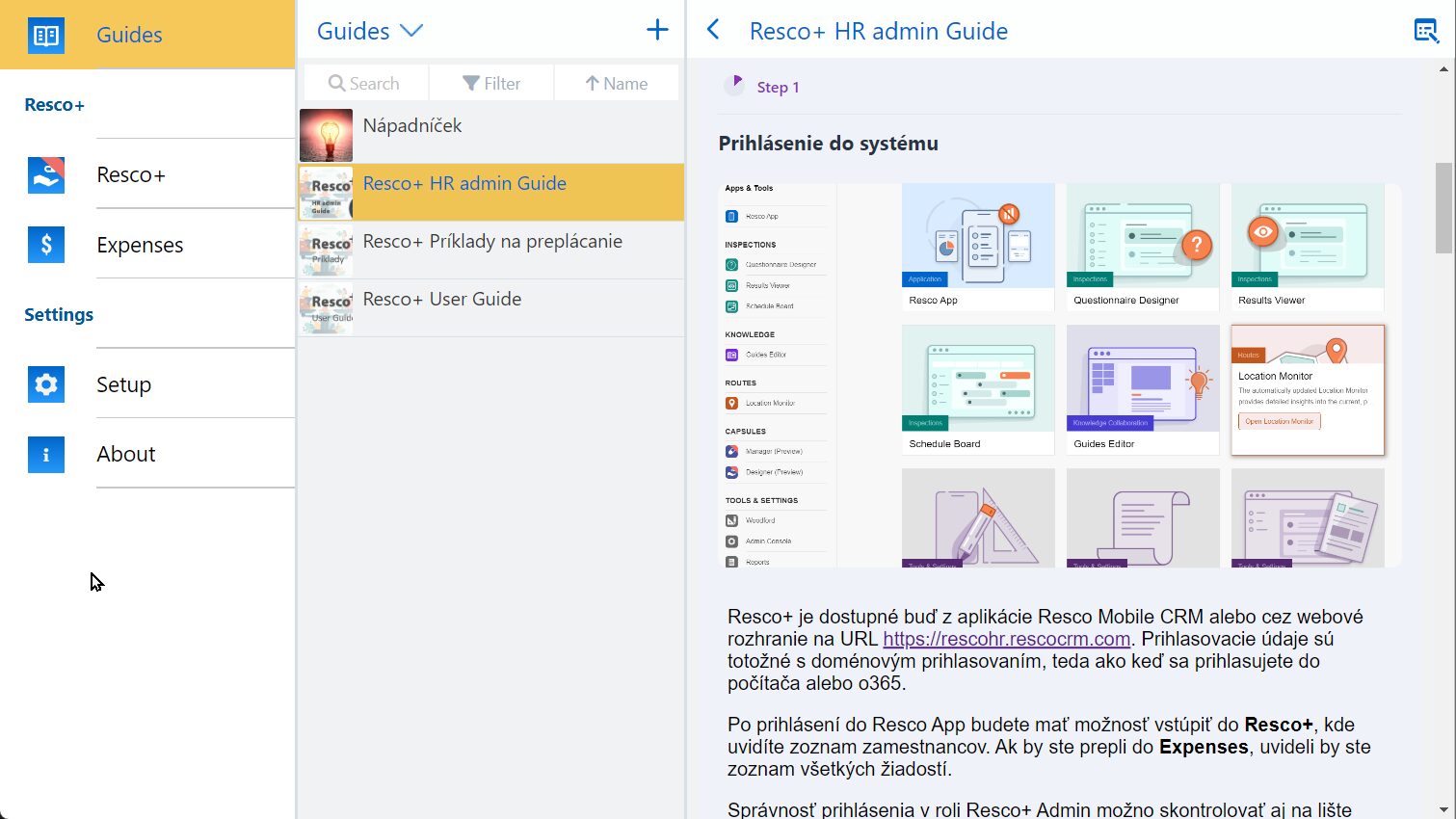 In Resco, guides are not only used in the benefits app. They have also found their way into the internal CRM, for which we use our own product – Resco Field Sales+.