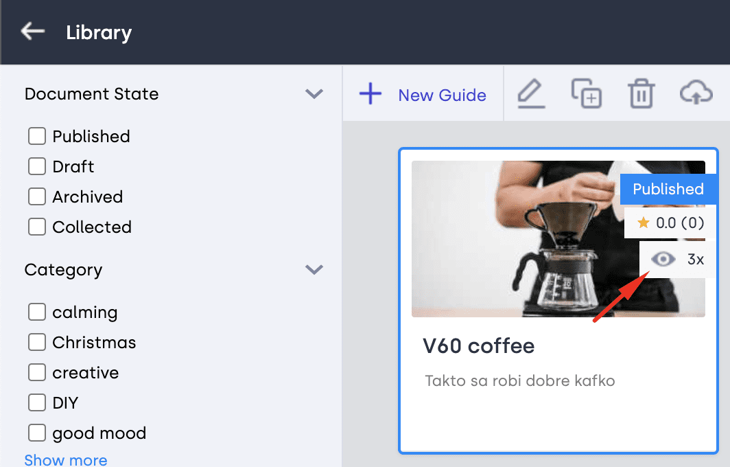 To let you see performance data on how specific guides are performing, Winter Update brings new functionality for statistics. The information on how many times users opened the guides is available in the guides library.