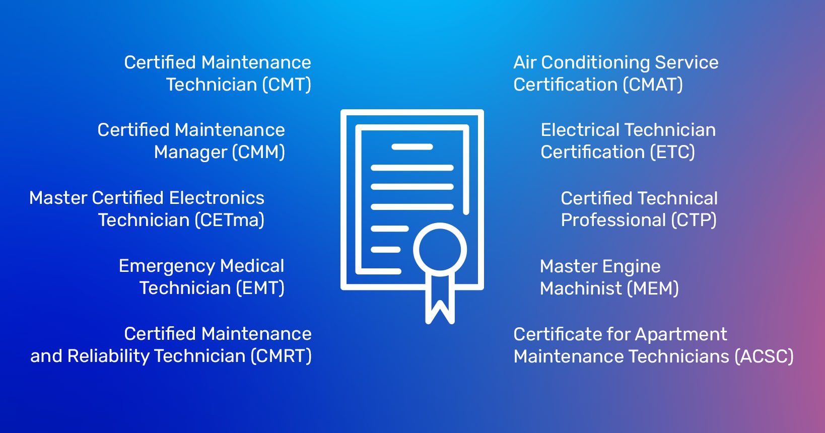 - Certified Maintenance Technician (CMT)